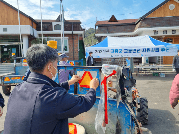 교통안전 지원사업은 농촌지역의 열악한 교통 환경과 농작업자의 고령화로 증가하고 있는 농업기계 교통사고를 줄이자는 취지의 사업으로 안전반사판 부착, 교통안전교육, 고령자 야간지팡이 등 안전용품을 지원하는 사업이다.
