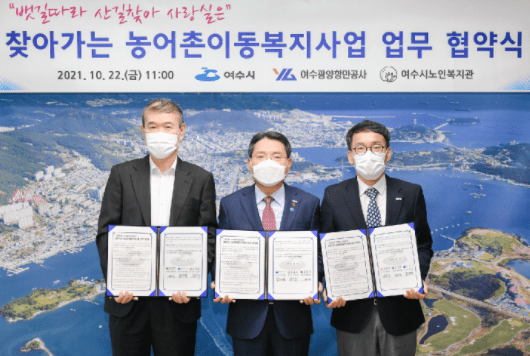 권오봉 여수시장은 “여수광양항만공사와 세 번째 업무 협약을 맺으며 여수시를 위해 다양한 사회공헌활동을 펼쳐주고 있음에 또 한번 감사의 마음을 전한다”며 “프로그램을 통해 농어촌지역 어르신들이 몸과 마음이 건강해지고 삶의 즐거움이 되찾아지는 세상과의 소통 공간이 되길 바란다”고 말했다.