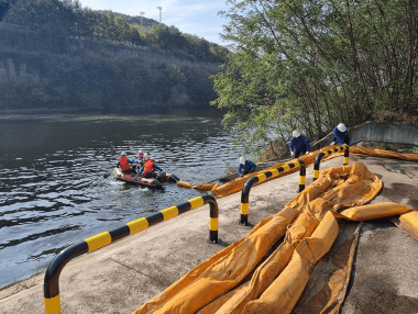 파주시는 지난 21일 파주LCD 공공폐수처리시설 저류지 일원에서 유류 유출 수질오염사고 대비 방제훈련을 실시했다.