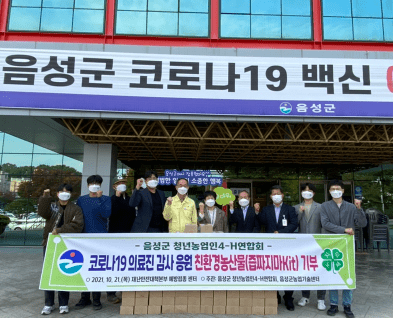 음성군 청년농업인4-H연합회는 지난 21일 코로나19 예방접종을 위해 쉬지 않고 일하고 있는 의료진들을 위해 사과즙, 복숭아즙, 흑마늘즙, 포도즙, 대추즙 등 농산물 가공품이 담겨있는 약 150만원 상당의 농산물 꾸러미를 예방접종센터에 기부했다.
