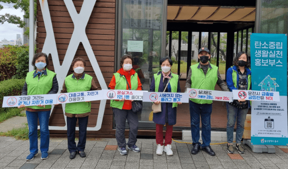 울산사 동구청은 10월 20일부터 21일까지 화정동 울산방어휴먼시아아파트 및 엠코타운이스턴베이아파트에서 그린리더 동구협의회 회원들과 공무원 등 약 10여 명이 참여한 가운데 아파트 입주민 대상으로 탄소중립 생활 실천 홍보부스를 운영하였다.