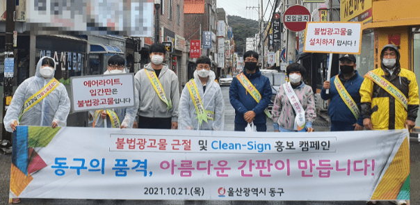 울산시 동구청은 10월 21일 오후 3시 남목 미포1길 일원에서 울산옥외광고협회 회원 및 주민 등 10여명이 참석해 바람직한 옥외광고문화의 정착과 깨끗하고 아름다운 거리 조성을 위한 ‘불법광고물 근절 캠페인'을 펼쳤다.