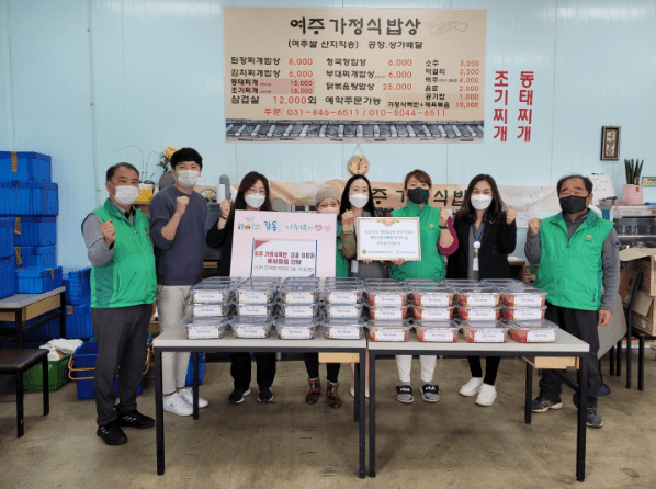양주시 고읍동 소재의 여주 가정식백반은 10월 21일, 양주시 회천노인복지관에 김치와 미역줄기볶음 1.8L 20통을 기부했다.