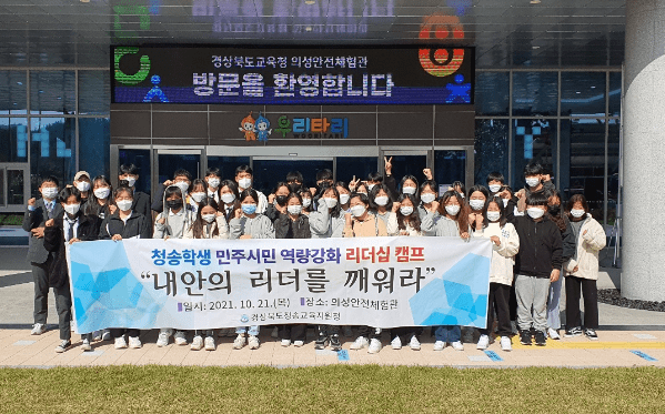 경상북도청송교육지원청은 10월 21일 청송교육지원청 및 경상북도교육청 의성안전체험관에서 관내 초 · 중 · 고등학교 학생자치회 대표(회장단 등)들 50여명을 대상으로 민주시민 역량강화 및 안전의식 고취를 위한 리더십 캠프를 실시하였다.