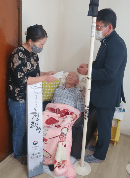 동부동에서는 20일 노인의 날을 맞이하여 올해 100세를 맞으신 지역 어르신 2명에게 장수지팡이 ‘청려장’과 문재인 대통령의 축하 서한을 전달했다.