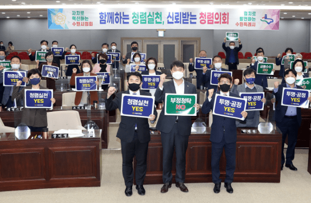 수원시의회 의원들이 시민으로부터 신뢰받는 의회상 정립을 위해 윤리실천규범과 행동강령을 숙지하고, 청렴 실천에 앞장설 것을 다짐했다.