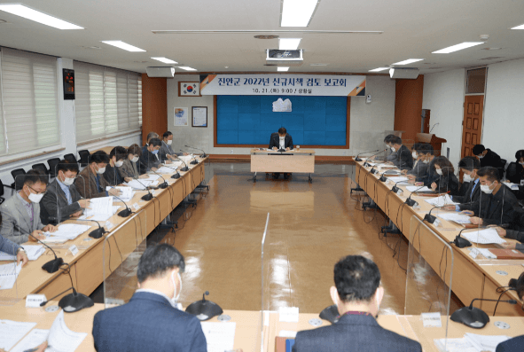진안군은 21일 상황실에서 전춘성 군수 주재로 각 부서장이 참석한 가운데 2022년 신규시책 검토 보고회를 가졌다.