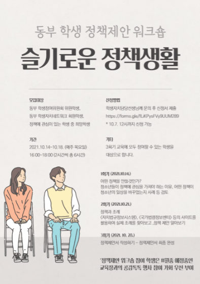 인천동부교육지원청은 28일까지 관내 초·중학생 12명을 대상으로 학생들의 정책참여 및 자치역량 강화를 위한 「슬기로운 정책생활」 워크숍을 운영한다.