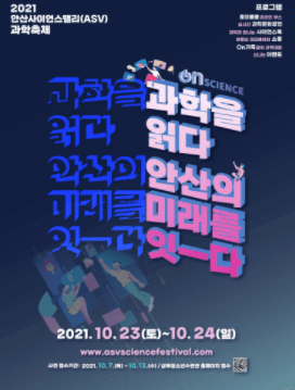 안산시는 ‘과학을 읽다, 안산의 미래를 잇-다’ 라는 슬로건으로 오는 23~24일 ‘2021 안산사이언스밸리(ASV) 과학축제’를 온라인으로 개최한다고 21일 밝혔다.