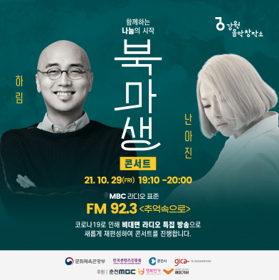 강원음악창작소가 오는 29일 금요일 오후 7시 10분 MBC 라디오(FM92.3)를 통해‘북‧마‧생 나눔콘서트’를 개최한다.