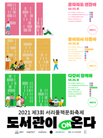 서울 서초구는 오는 22일부터 24일까지 3일간 4곳의 서초구립도서관 연합인 ‘제3회 서리풀책문화축제-도서관이 ON(온)다’를 온·오프라인으로 연다.