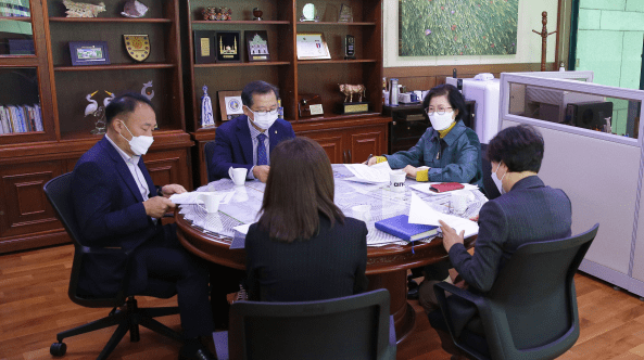 안산시의회 박은경 의장은 20일 오전 의장실에서 지역사회보장협의체 관계자들을 만나 주요 현안에 대해 협의했다.