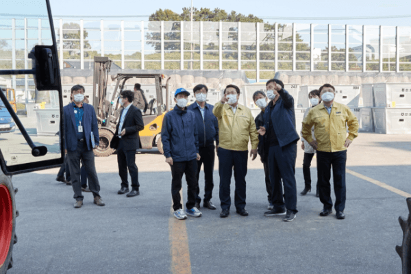 오세현 아산시장이 20일 선도농협(선장면) 경제사업장 햇반용 가공용벼 수매현장을 방문했다.