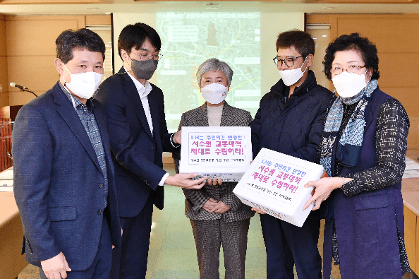 수원시의회 윤경선 의원(진보당, 금곡·당수·입북동)과 ‘서수원 도로교통망 개선 주민 대책위원회’는 20일 서수원 도로교통망 개선을 위해 LH와 수원시 관계자들과 간담회를 진행하고 1만여 명의 주민 서명부를 전달했다.
