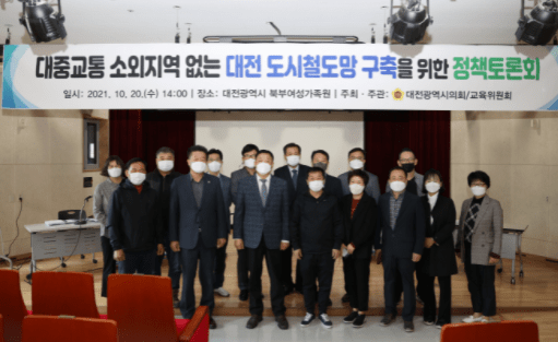 대전광역시의회가 주최하고 교육위원회가 주관하여 이루어진‘대중교통 소외지역 없는 대전 도시철도망 구축을 위한 정책토론회’가 20일 대전시 북부여성가족원에서 개최됐다.