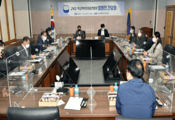 김석준 부산광역시교육감이 20일 낮 12시 시교육청 제1회의실에서 부산광역시학교학부모회총연합회 장세진 회장과 임원, 교육청 관계자가 참석한 가운데 열린 ‘2021년 학교폭력예방 캠페인 참여 학부모회임원진과의 간담회’에서 인사말을 하고 학부모회임원진을 격려했다.