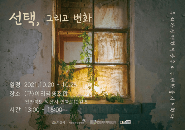 시는 익산의 청년예술인과 청년들이 ‘우리가 선택한 익산, 우리는 변화를 시도한다’라는 주제로 예술 전시회 ‘선택, 그리고 변화’를 구)이리금융조합에서 개최한다고 밝혔다.