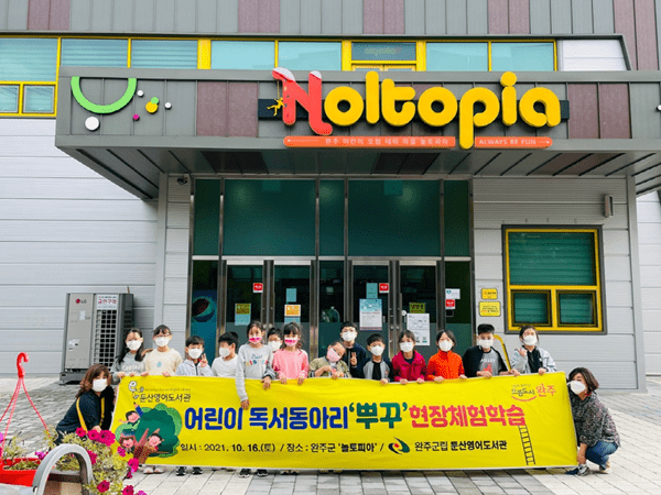 완주군 둔산영어도서관이 어린이 독서동아리 회원을 대상으로 어린이 모험시설인 놀토피아 현장체험학습을 실시했다.