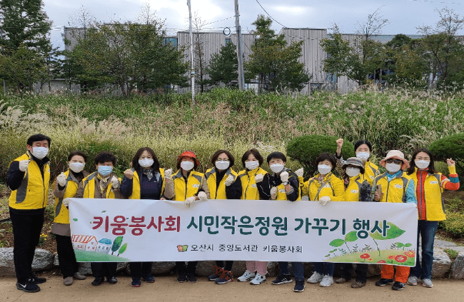 오산시는 오산시도서관 봉사단체인 키움봉사회가 지난 16일 오산천에 조성된 시민작은정원에 자라난 잡초를 뽑고 꽃을 다듬는 시민작은정원 가꾸기 행사를 실시했다고 20일 밝혔다.