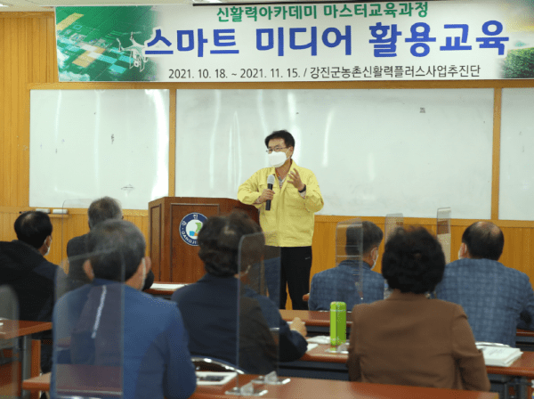 강진군 농촌신활력플러스사업추진단은 지난 18일 전남문화관광해설사협회 강진지회 회원 28명을 대상으로 ‘신활력아카데미 마스터과정 – 스마트 미디어 활용 교육’을 개강했다.