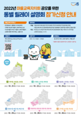 시흥시가 오는 21일부터 29일까지 마을교육자치 확산과 실천을 위해 마을교육자치회 동별 릴레이 설명회를 개최한다.