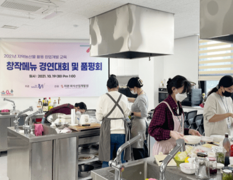 주요 메뉴는 사과샐러드, 산나물페스토, 쌀누룽지식혜, 쌀누룽지리조또, 사과시나몬롤 등 충주의 특산자원을 식자재로 하는 7종의 다양한 제품을 선정해 제조법을 배웠으며 교육생별로 이를 응용한 새로운 메뉴를 창작해 품평회를 선보였다.