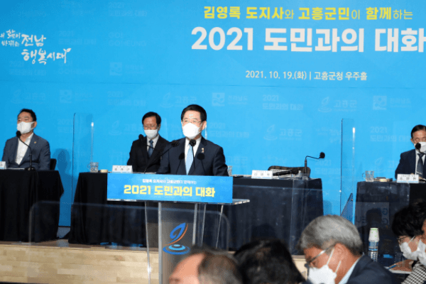 이날 도민과의 대화엔 송귀근 고흥군수와 송영현 고흥군의회 의장, 박진권·박선준 도의원 등 21명이 현장 참석했다. 군민 150명은 온라인 화상회의로 참여했다.