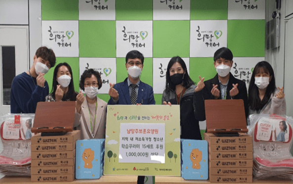 남양주시 별내동에 소재한 남양주보훈요양원(원장 조성제)은 지난 18일 지역 내 저소득 가정 청소년을 위해 독서대, 학용품 세트, 체형 교정 의자로 구성된 학습 꾸러미 15세트(100만 원 상당)를 남양주시복지재단 산하 북부희망케어센터(센터장 대행 김희정 팀장)에 전달했다.