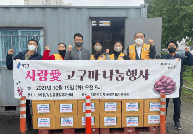 용인시 기흥구 상갈동과 보라동의 어려운 이웃을 위해 대한적십자사 용인보라봉사회가 고구마를 120박스를 기탁했다.