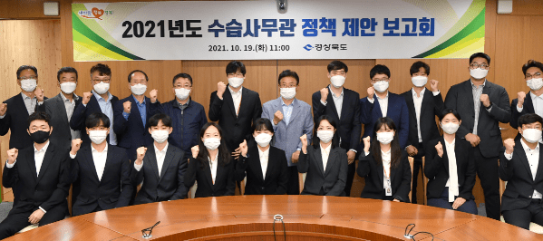 경상북도는 19일 도청에서 ‘2021 수습사무관 정책 제안 보고회’를 개최해 예비간부들의 정책 아이디어 대결을 펼쳤다고 밝혔다.
