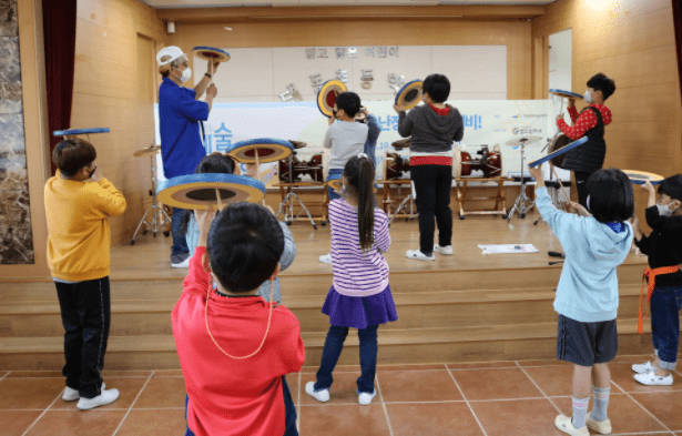 경산 대동초등학교는 10월 19일 한국문화예술위원회가 추진하는 대국민 문화향유 증진사업의 일환인‘힘나는 예술여행’프로그램을 신청하여 사회적협동조합 별고을광대 공연팀을 초청하여 신명나는 악기 난타 공연 및 버나 만들기 체험에 참여하였다.