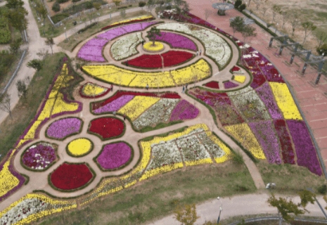 무안 일로읍 회산백련지 국화동산에 아름다운 국화가 만개하고 갈대동산의 핑크뮬리와 팜파스는 가을 정취를 물씬 풍기고 있다.