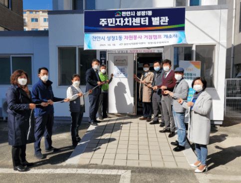 천안시자원봉사센터가 지난 18일 성정1동 주민자치센터 별관에서 자원봉사 거점캠프 4호점 개소식을 열었다.