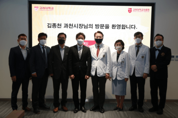 김종천 과천시장이 18일 김영훈 고려대학교 의무부총장 겸 의료원장을 만나 종합의료시설 관련 협력체계를 위한 대화를 나눴다고 밝혔다.