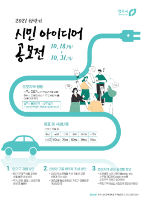 청주시가 이달 31일까지 시민의 창의적이고 다양한 아이디어 발굴을 위한 ‘2021년 하반기 시민아이디어 공모전’을 개최한다.
