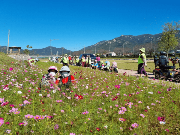 장흥군 대덕읍 대덕천변 일원에 가을 정취를 즐길 수 있는 코스모스 꽃길이 조성돼 관내 방문객과 주민들에게 기쁨을 선사하고 있다.