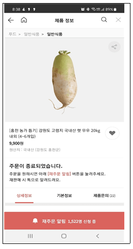 강원도와 카카오메이커스는 강원도 고랭지 무 소비확대를 위해 10. 15일부터 시작한 ‘강원 청정 고랭지 무’ 판매 행사를 10. 17일에 조기 마감했다.