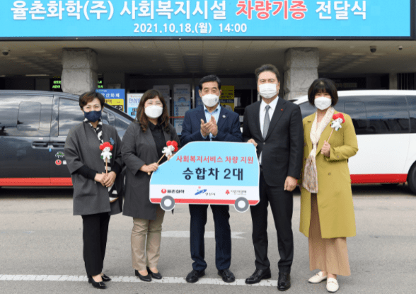 안산시는 18일 ㈜율촌화학(대표 송녹정)으로부터 사회복지시설을 위한 스타리아(디젤·11인승) 차량 2대를 기증받았다.