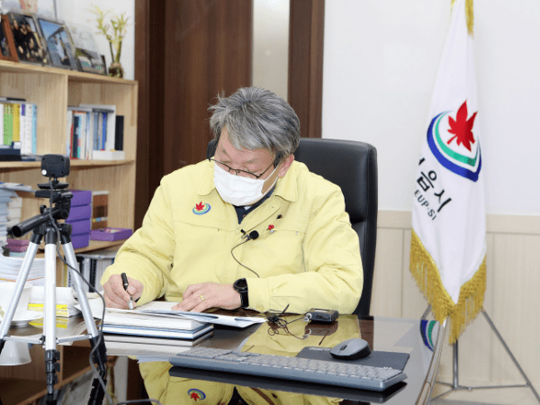 유진섭 시장이 18일 영상 간부회의를 주재하고 동학농민혁명 동상 재건립 모금과 관련해 시민들이 적극적으로 참여할 수 있도록 관련 부서가 애써줄 것을 주문했다.