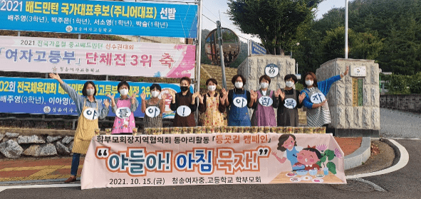 경상북도청송교육지원청은 15일 관내 중,고등학교 등교 시간에 맞추어 학부모회장지역협의회 동아리활동으로 『등굣길 캠페인』을 실시하였다.