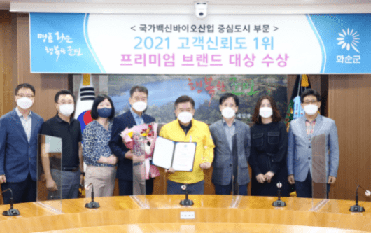 화순군이 중앙일보와 포브스코리아가 주관한 ‘2021 고객 신뢰도 1위 프리미엄 브랜드 대상’을 수상했다.