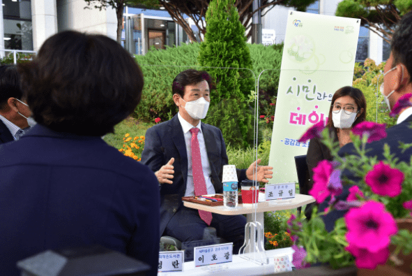 조규일 시장은 지난 13일 오후 4시 30분 연암도서관 야외에서 작은 도서관 관계자 6명과 함께 10월 ‘시민과의 데이트’ 시간을 가졌다.