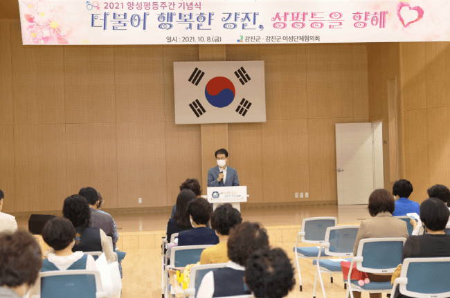 지난 8일 강진군은 청소년수련관 대강당에서 ‘더불어 행복한 강진, 성평등을 향해’라는 슬로건으로 2021년 강진군 양성평등주간 기념행사를 개최했다.
