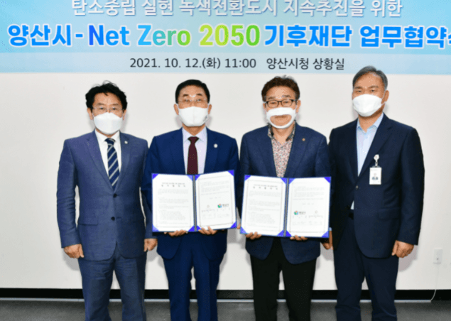 양산시는 12일 오전 11시 시청 상황실에서 넷제로(Net Zero)2050 기후재단과 업무협약을 체결한다고 밝혔다.
