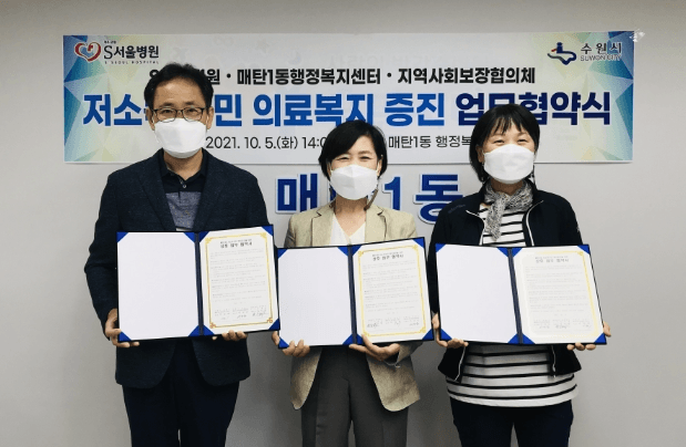 수원시 영통구 매탄1동 행정복지센터는 지난 5일, S서울병원과 저소득 주민의 의료복지 증진을 위한 후원 업무협약을 체결했다.