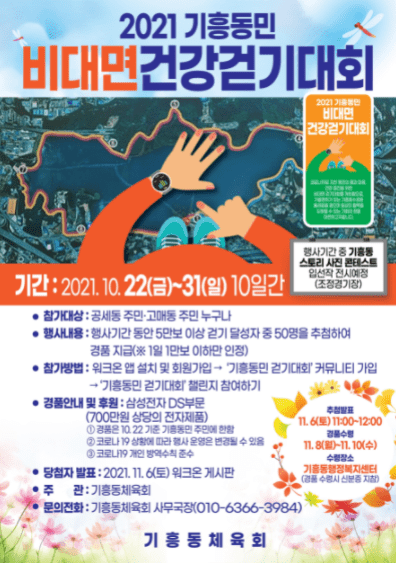 ‘2021 기흥동민 비대면 건강걷기대회’가 22일부터 31일까지 비대면으로 열린다.