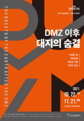 이번 전시는 10월 22일부터 11월 21일까지 현대의 우리 사회 코로나 상황을 이겨내고 미래비전을 제시하는 전시 ‘DMZ 이후, 대지의 숨결’展을 자연, 사람, 기억 등을 키워드로 해서 선보인다.
