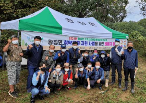 연천군 왕징면 지역사회보장협의체는 15일 왕징면 특색사업인 벼 재배사업으로 왕징면 동중리 일대에서 벼와 들깨를 심어 수확하는 행사를 진행했다.