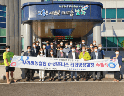 고흥군은 지난 달 30일 농업기술센터에서 직거래농가 26명이 참가한 가운데 ‘2021년 사이버농업인 e-비즈니스 리더양성과정’ 수료식을 가졌다.