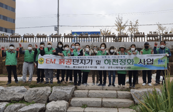 양주시 회천2동 새마을부녀회와 새마을지도자회는 지난 4일 ‘하천살리기 생명살림 운동’으로 덕계천 수질 개선을 위한 ‘EM흙공 던지기’와 ‘환경정화활동’ 행사를 실시했다.